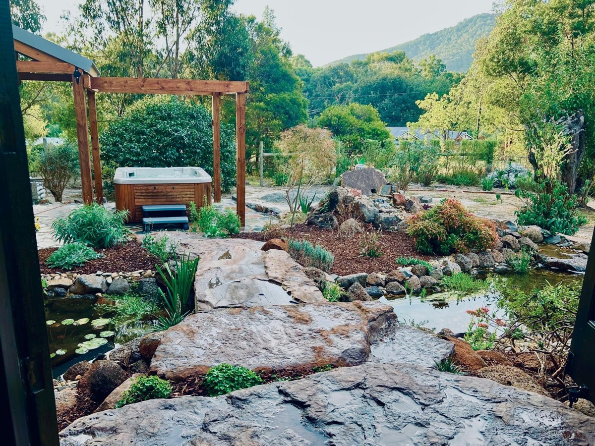 A 2BR luxury cottage, set on a 5-acre farm, in the heart of Yarra Valley, surrounded by pond, bush, wildlife and mountain views. Pick fresh eggs, feed our friendly animals, watch fish swim, or stroll amongst native trees, relax in Hot Spa or by the Firepit.