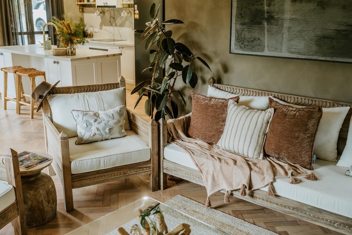 - Spacious lounge with a three-seater sofa and two cozy chairs
