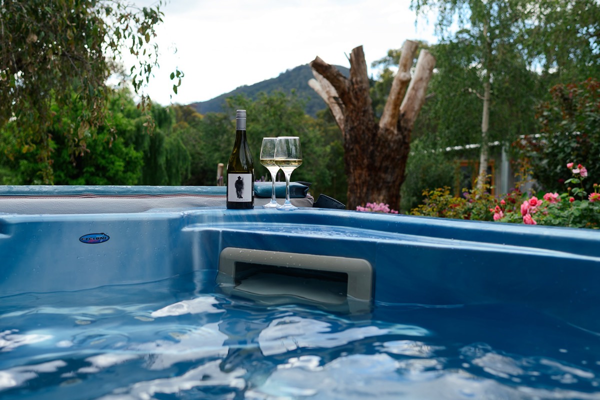 - Hot spa with breathtaking views of garden, farmland and mountains – spa is heated and ready upon arrival